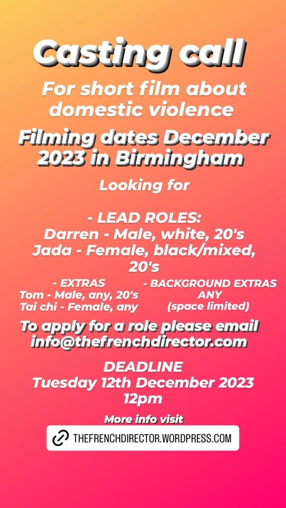We are casting roles for a new short film in collaboration with Sudden Production. the film “Rewind and Fast Forward” will be part of the a project with the same title to raise awareness to domestic Violence towards young women.
